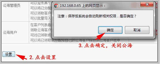 点击确认关闭公海功能