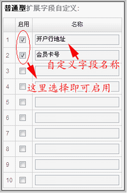 注意:普通型扩展字段内容为手动录入,为方便以后的查询,请将录入内容规范。举例说明:如普通扩展字段“消费金额”,我们在录入时,可统一要求,不要有的录入50000,有的录入五万或者5万。我们可以统一为50000这样的录入形式。方便后期查询。 |