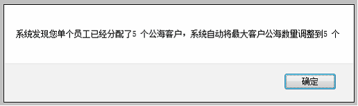 当前系统中已有用户领取5个公海客户,若将可领取公海数量调整为3,则提示如下图: