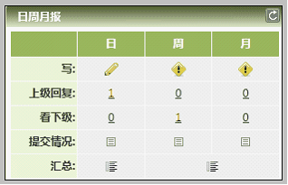 说明 写周报时可以参考当周的日报;写月报时可以参考当月的周报。本周可以指定下周的计划,本月可以指定下月的计划。 周报和月报界面可同时展示当周或者当月的日程、任务和行动历史,辅助回忆和了解当期的行动情况。 周报和月报支持上级审批、自己补充回复的功能。 周报和月报的功能入口 在工作台、日程行动两个位置,均有日、周月报的功能入口,如下图所示: 这个功能模块包含了日周月报的核心功能,主要分为:写、看(上级回复、下级)、汇总、提交情况。 对于Boss用户来说,没有看上级回复的功能; 对于Sales用户或者没有下级的用户来说,没有看下级日周月报的功能。 看下级位置,显示具体的数字比如3或者15,表明有3份或者15份的新报表没有看;同时,日报位置显示的是过去5个工作日内未读日报总份数;周月报显示的是本期未读周月报的总份数。也就是说,当您看到这些位置出现了非0数字,则表示提醒您有新内容需要注意查看。 上级回复,显示具体数字的含义表明有几个上级回复未读。不过,不论是什么时候的上级回复,只要没有看过,都在这里计数提醒(这一点,和看下级的提醒不同)。 |